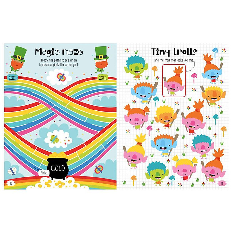 - Bao gồm 32 trang hoạt động với mê cung, câu đố và cảnh để tô màu.