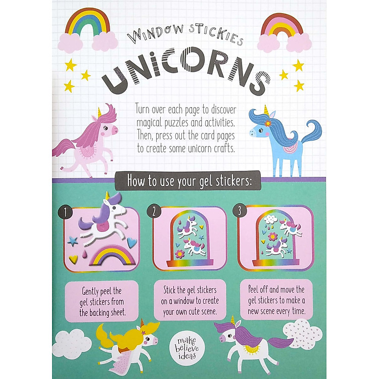- Sách Window Stickies Unicorns chứa các hoạt động thú vị và hấp dẫn với 32 trang.