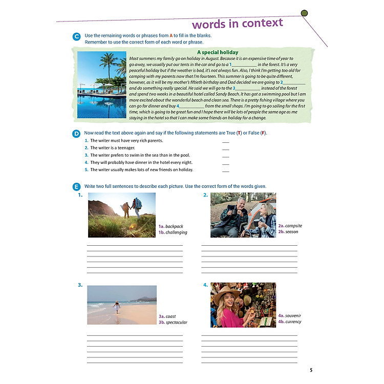 - Bài học xoay quanh các chủ đề như Giáo dục, Kỳ nghỉ, Giải trí, Nghệ thuật & Văn hóa.