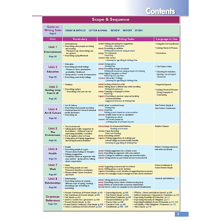 – Mỗi bài cung cấp nguồn từ vựng và cấu trúc hữu ích dùng trong bài thi viết