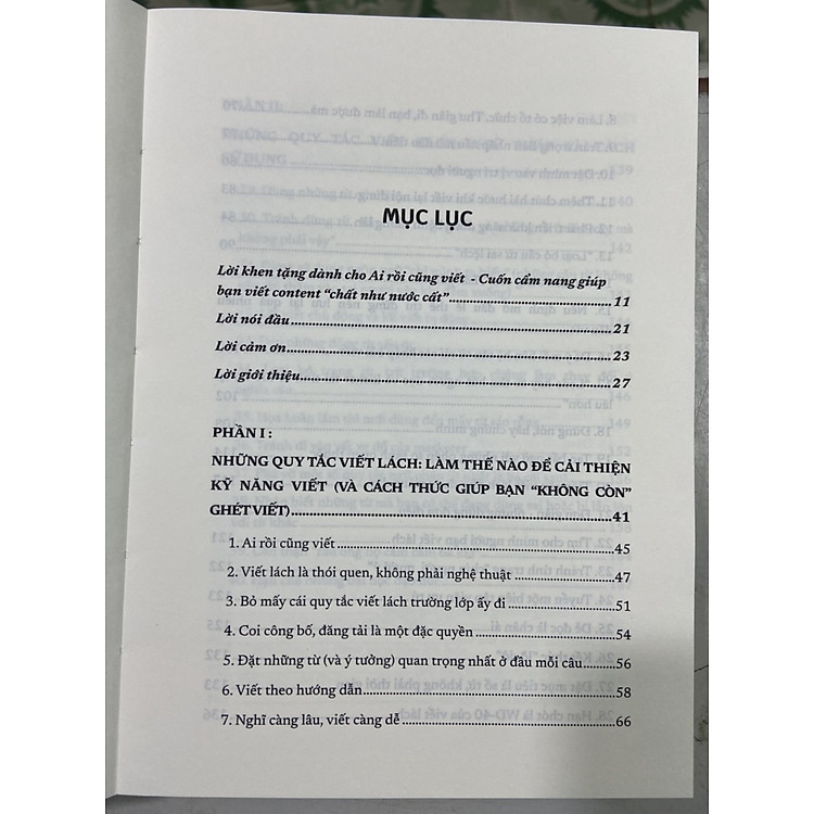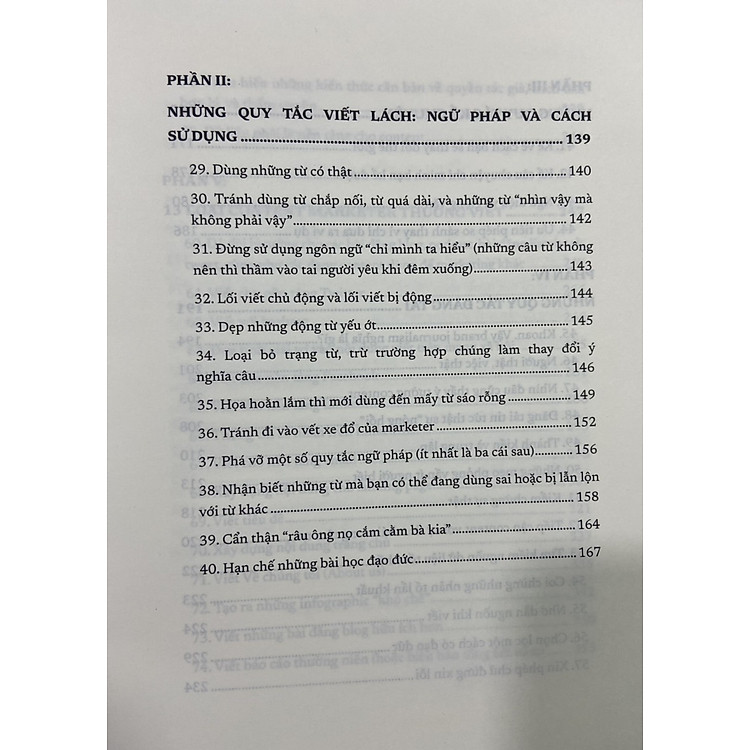 - Phần I: Những quy tắc viết lách cơ bản, giúp bạn thoát khỏi nỗi ám ảnh viết.