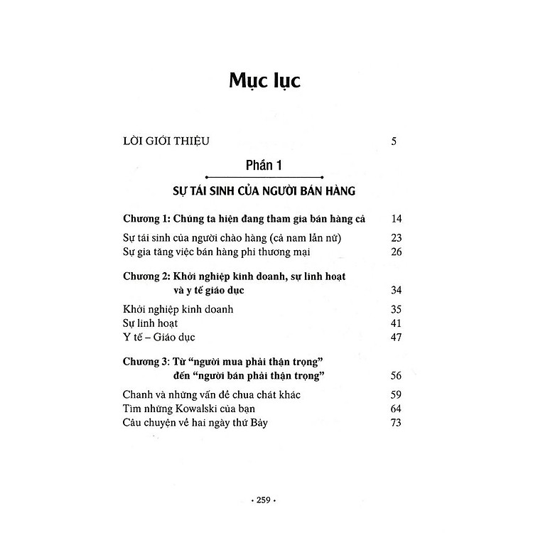 - Chương 1 đến chương 9: Khám phá những thay đổi trong thế giới bán hàng, từ quyền lực của người mua đến các kỹ năng cần thiết để thành công.