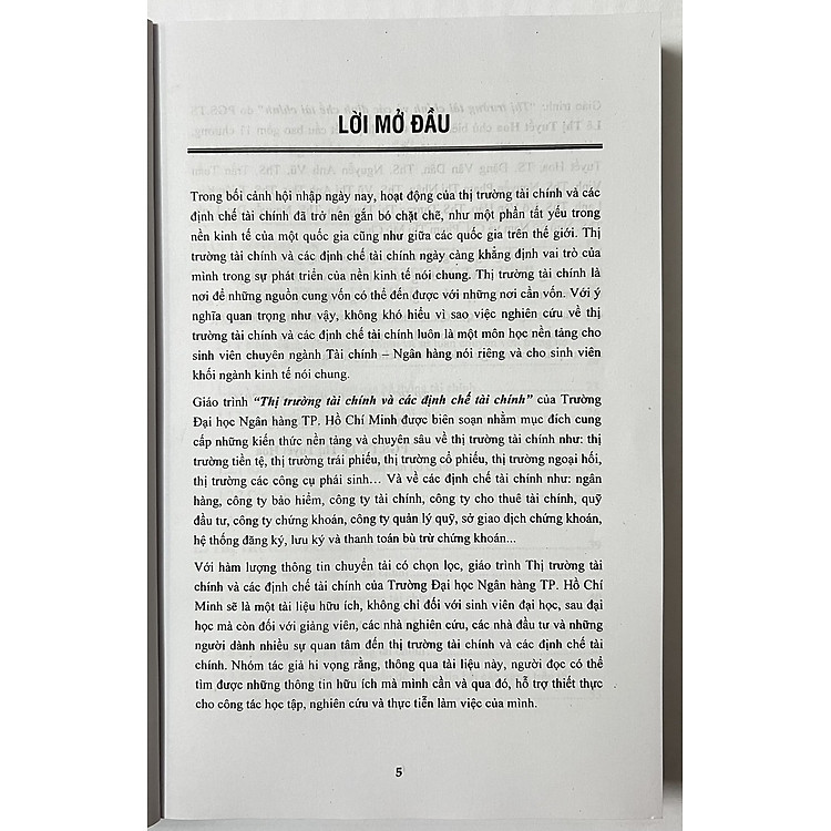 Trong bối cảnh hội nhập ngày nay, hoạt động của thị trường tài chính và các định chế tài chính đã trở nên gắn bó chặt chẽ, như một phần tất yếu trong nền kinh tế của một quốc gia cũng như giữa các quốc gia trên thế giới. Giáo trình “Thị trường tài chính và các định chế tài chính” của Trường Đại học Ngân hàng TP. Hồ Chí Minh được biên soạn nhằm cung cấp những kiến thức nền tảng và chuyên sâu về các khía cạnh của thị trường tài chính.