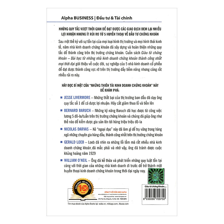 - Cuốn sách giới thiệu những quy tắc vượt thời gian từ 5 huyền thoại đầu tư chứng khoán.