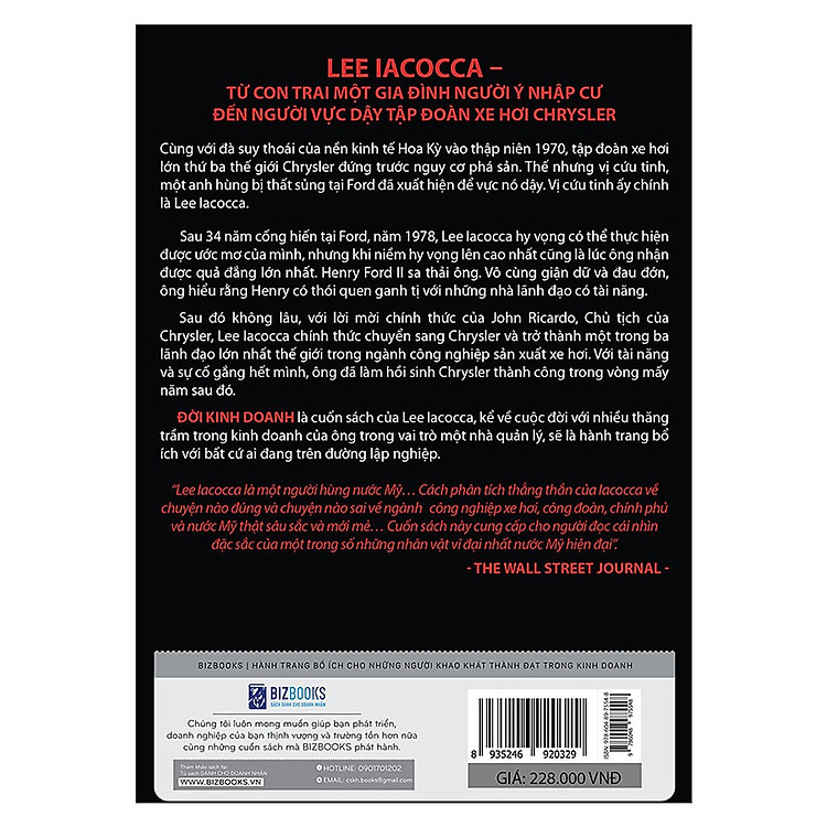 “Iacocca – Đời Kinh Doanh” không chỉ đơn thuần là một tiểu sử, mà còn là một cuốn sách hướng dẫn về nghệ thuật lãnh đạo và khởi nghiệp. Lee Iacocca, với tài năng và sự kiên trì của mình, đã biến Chrysler từ một công ty đang gặp khủng hoảng thành một trong những tên tuổi lớn trong ngành ô tô. Ông đã chia sẻ những bài học về quản lý, cách đối mặt với khó khăn cũng như bí quyết để truyền cảm hứng cho đội ngũ nhân viên. Cuốn sách giúp bạn hiểu rõ hơn về những quyết định khó khăn mà một người lãnh đạo phải đưa ra trong bối cảnh khó khăn.