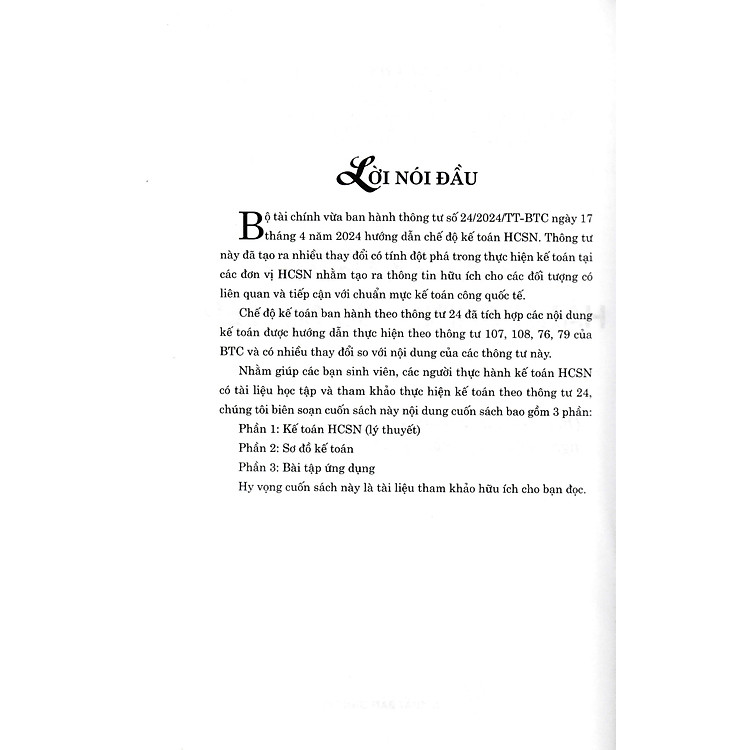 - Cuốn sách “Kế Toán Hành Chính Sự Nghiệp” được biên soạn theo thông tư số 24/2024/TT-BTC của Bộ Tài Chính.