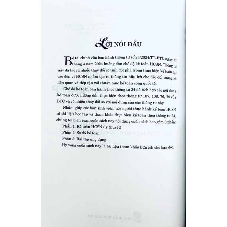 Lý thuyết cập nhật: Cuốn sách cung cấp những kiến thức lý thuyết mới, phản ánh đúng những thay đổi trong chế độ kế toán theo thông tư 24. Điều này giúp bạn nắm bắt kịp thời các quy định và yêu cầu mới trong lĩnh vực kế toán hành chính sự nghiệp.