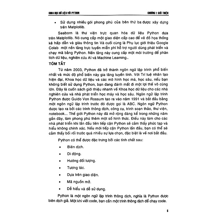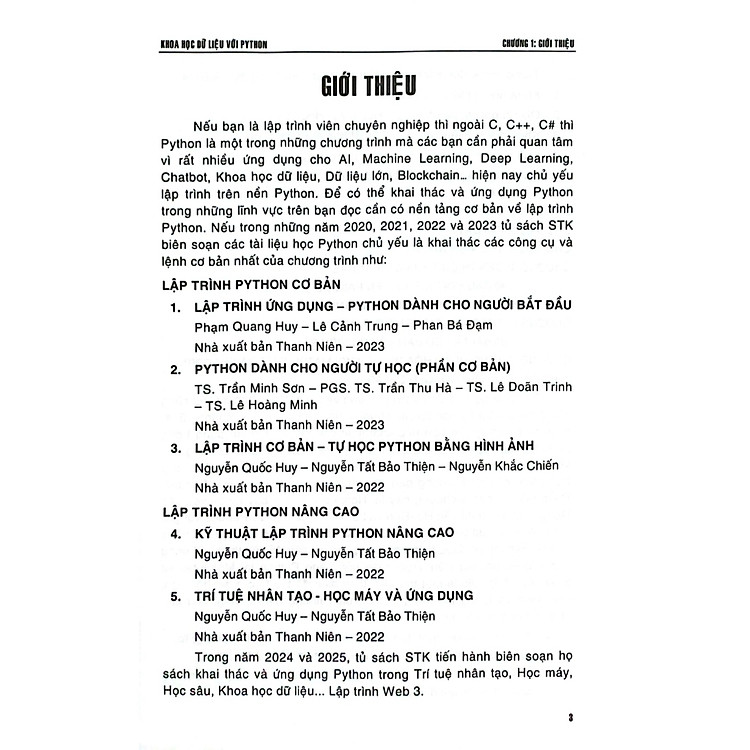 - Chương 1 và 2 cung cấp giới thiệu về sách và cài đặt Python.