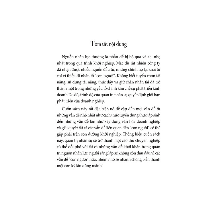 Cuối cùng, nếu bạn đang ở ngã rẽ khởi nghiệp và muốn tìm kiếm bí quyết cho sự thành công, cuốn sách này chắc chắn sẽ là một người bạn đồng hành đáng giá. Hãy nhớ rằng, quản trị nhân sự là một nghệ thuật cần thời gian học hỏi và rèn luyện.