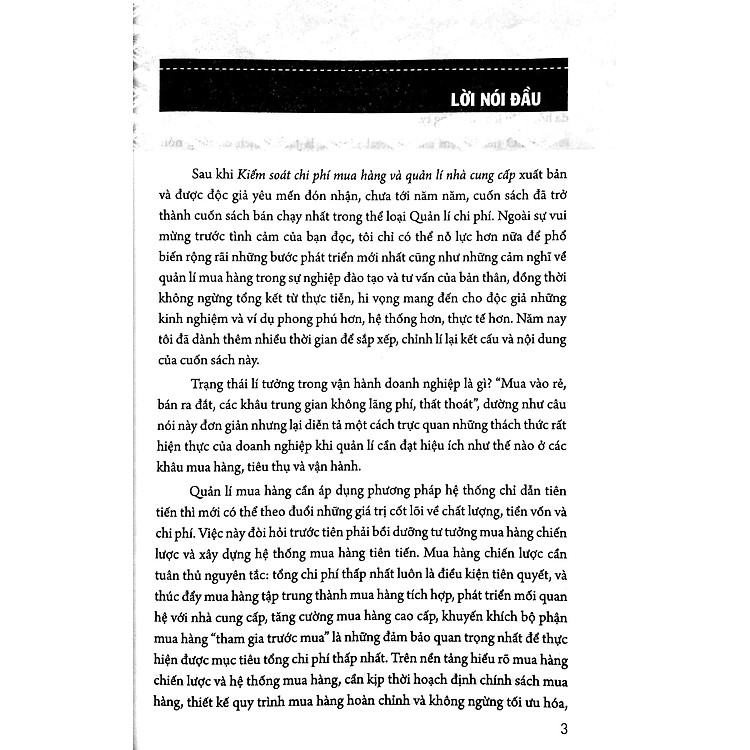 Kiểm Soát Chi Phí Mua Hàng Và Quản Lí Nhà Cung Cấp của tác giả Chu Vân mang đến cái nhìn sâu sắc về quản lý mua hàng trong doanh nghiệp. Cuốn sách không chỉ dừng lại ở lý thuyết mà còn đưa ra các phương pháp thực tiễn giúp các nhà quản lý dễ dàng áp dụng vào công việc của mình. Từ việc xây dựng tư duy mua hàng chiến lược đến việc phát triển mối quan hệ với nhà cung cấp, tác giả đã khéo léo lồng ghép các khái niệm quan trọng về chi phí và hiệu quả trong quy trình mua hàng.