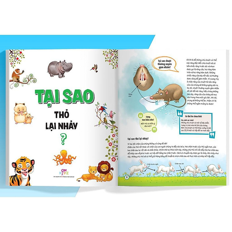 2. Con được tìm hiểu những câu hỏi “Tại sao? Ví dụ như “Tại sao ong mật lại chết sau khi đột người khác?”, “Tại sao bò tót lại húc vật màu đỏ?”, “Tại sao máu bạch tuộc lại có màu xanh?”, …