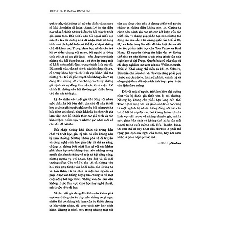 Một cuốn sách không đơn thuần chỉ là giải trí, đồng thời còn giúp nguồn cảm hứng bền bỉ cho bạn đọc. Nếu bạn yêu thích, 100 Nhà Triết Học Vĩ Đại Thay Đổi Thế Giới xứng đáng có mặt trong tủ sách.