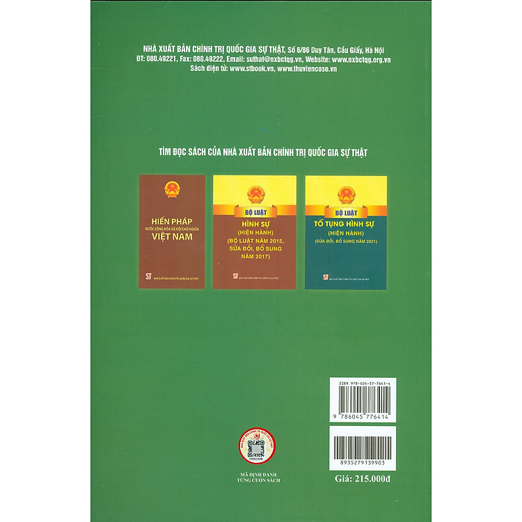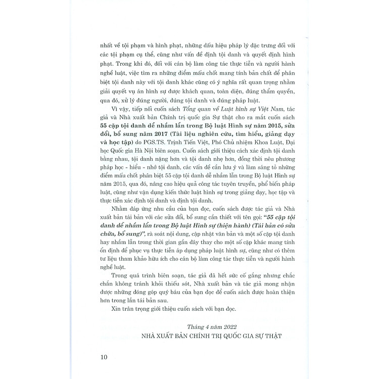 Các thông tin khác: 55 CẶP TỘI DANH DỄ NHẦM LẪN TRONG BỘ LUẬT HÌNH SỰ (HIỆN HÀNH) (Tái bản có sửa chữa, bổ sung – Năm 2022)