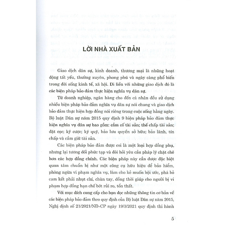 Giao dịch dân sự, kinh doanh, thương mại là những hoạt động tất yếu, thường xuyên, phong phú và ngày càng phổ biến trong đời sống kinh tế, xã hội. Đi liền với những giao dịch đó là các biện pháp bảo đảm thực hiện nghĩa vụ dân sự.