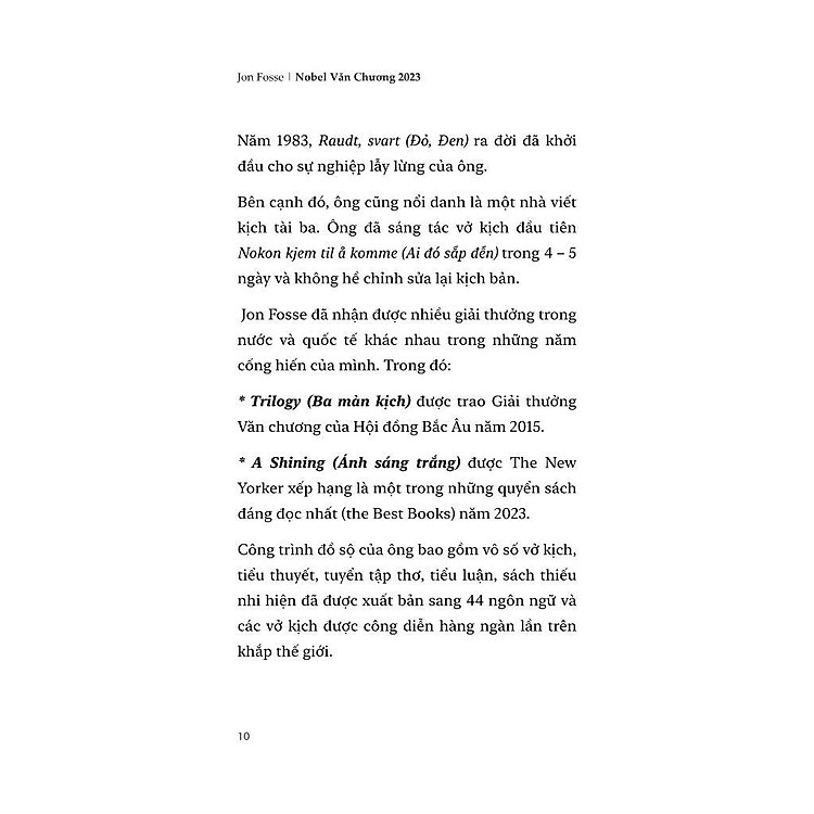 - Title: “Ba Màn Kịch” by Jon Fosse, Nobel Prize in Literature 2023.