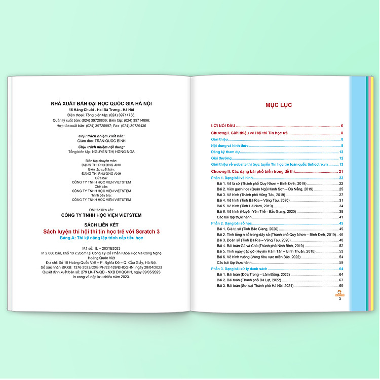 – Sách “Bài tập Nâng cao Scratch 3 và sách “Luyện thi hội thi tin học trẻ với Scratch 3” cấp Tiểu học cung cấp cho học sinh kiến thức nâng cao về lập trình Scratch và tài liệu hướng dẫn ôn luyện “Hội thi Tin học trẻ”.