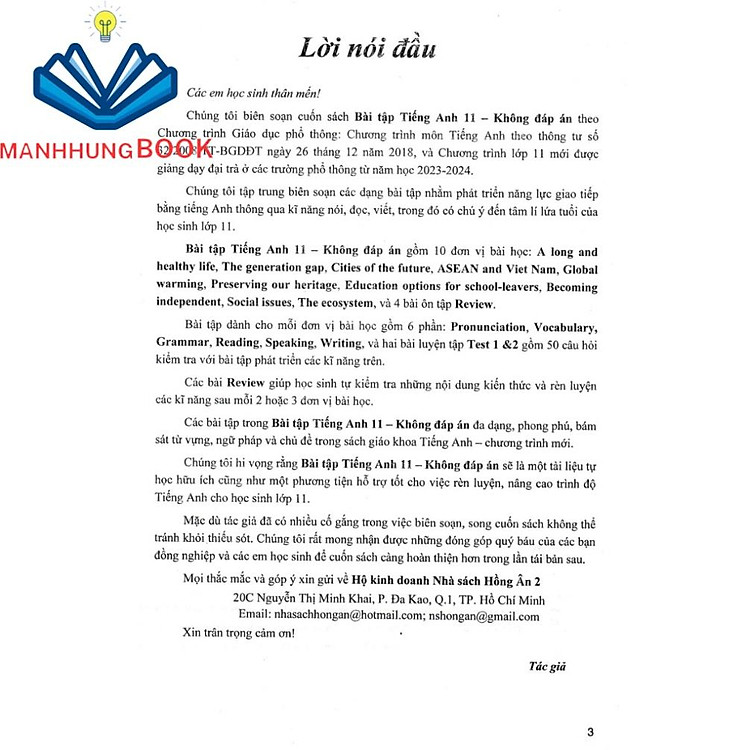 Các thông tin khác: Bài Tập Tiếng Anh Lớp 11 (Không Đáp Án)
