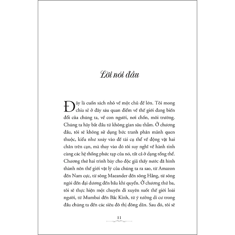 Chương 1: giới thiệu sơ về không gian, định vị Trái đất trong vũ trụ. “Ngành khoa học mô tả hành tinh nơi chúng ta đang sống chính là địa lý, “geography” – từ mà chúng ta thừa hưởng từ tiếng Hy Lạp – có nghĩa là “bản mô tả Trái đất”.”