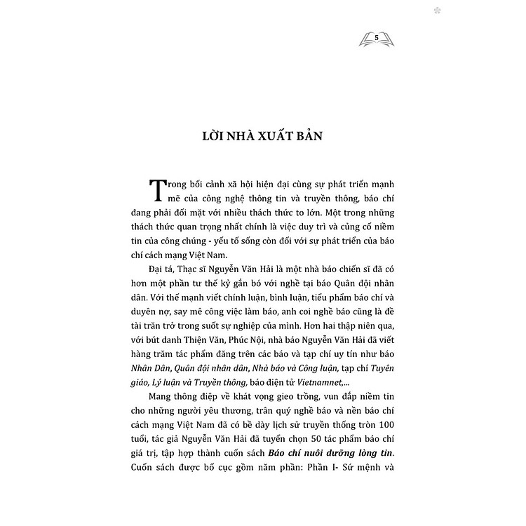 - Authored by Nguyễn Văn Hải, this book emphasizes fostering trust in journalism and honors the centenary of Vietnamese revolutionary journalism.
