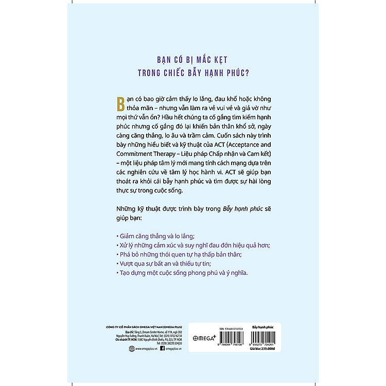 Bẫy hạnh phúc – Cuốn sách đã được dịch ra 30 ngôn ngữ, đã bán 1 triệu bản trên thế giới. Tính đến thời điểm hiện tại thì có thể coi đây là cuốn sách thực hành ACT đầu tiên ở Việt Nam.
