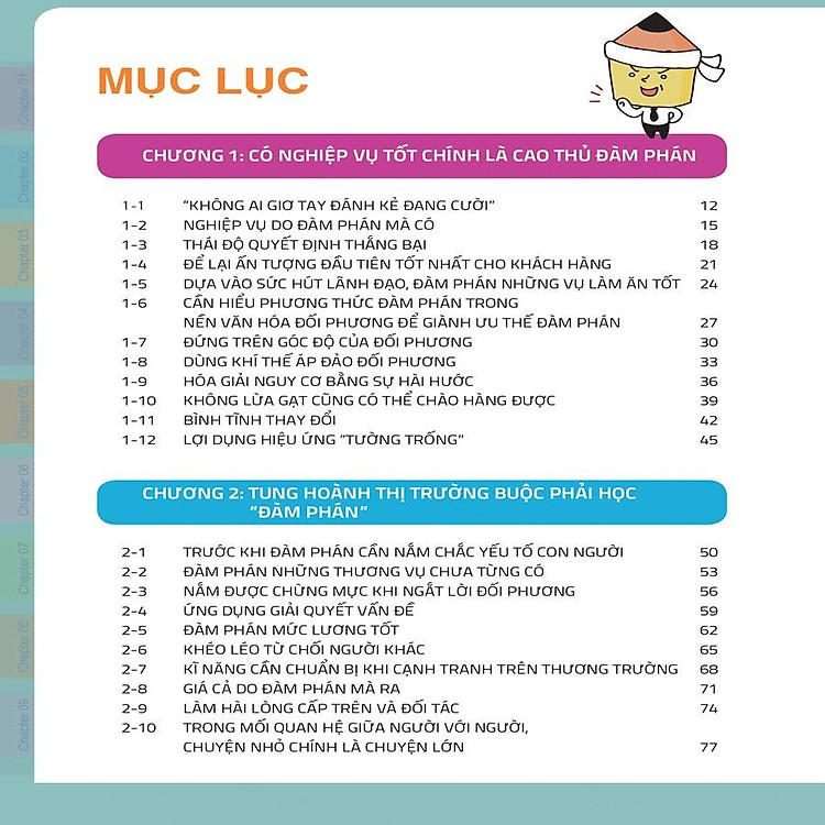 Cuốn sách này dựa trên những ví dụ thực tế trong cuộc sống, kết hợp hình minh họa vui nhộn, sẽ chỉ ra cho bạn biết phải chuẩn bị thế nào trước khi đàm phán để đối thủ đồng thuận với cách của bạn, để bạn giành chiến thắng tối đa trong các cuộc đàm phán.