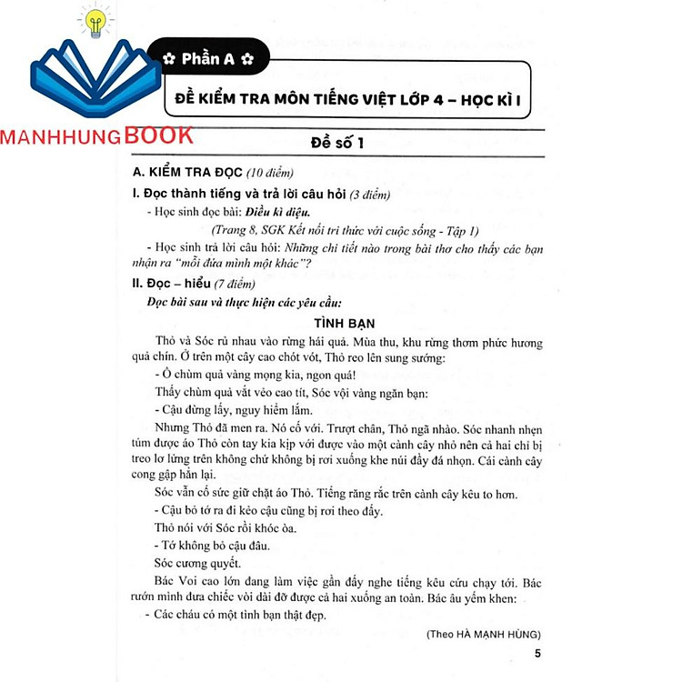- Part A: Vietnamese Test Questions for Grade 4 – Semester 1.