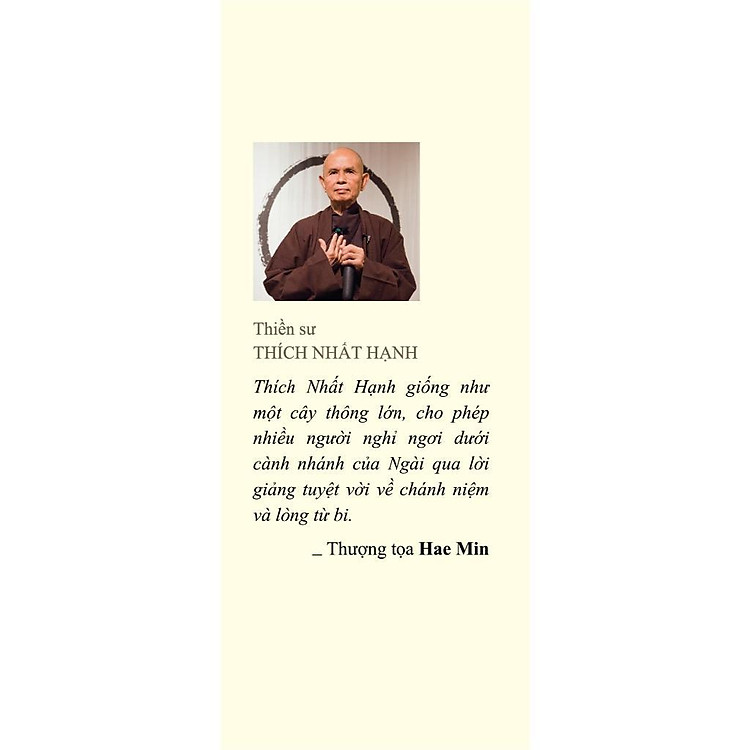 “Thích Nhất Hạnh giống như một cây thông lớn, cho phép nhiều người nghỉ ngơi dưới cành nhánh của Ngài qua lời giảng tuyệt vời về chánh niệm và lòng từ bi.” _ Thượng tọa Hae Min