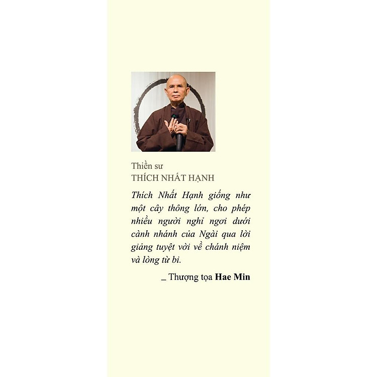 “Thích Nhất Hạnh giống như một cây thông lớn, cho phép nhiều người nghỉ ngơi dưới cành nhánh của Ngài qua lời giảng tuyệt vời về chánh niệm và lòng từ bi.” _ Thượng tọa Hae Min