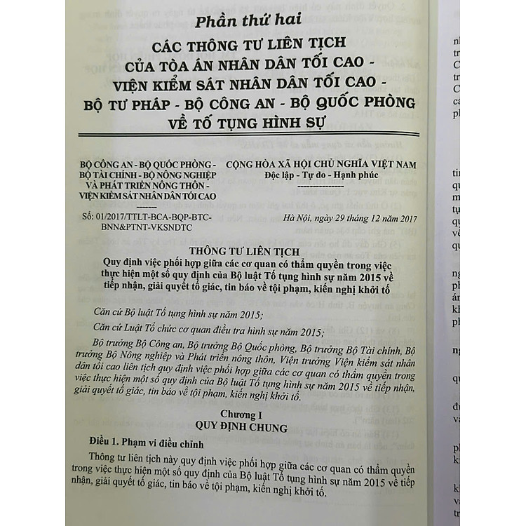 Phần thứ hai: Các Thông tư liên tịch của Tòa án nhân dân tối cao – Viện Kiểm sát nhân dân tối cao – Bộ Tư pháp – Bộ Công an – Bộ Quốc phòng về tố tụng hình sự