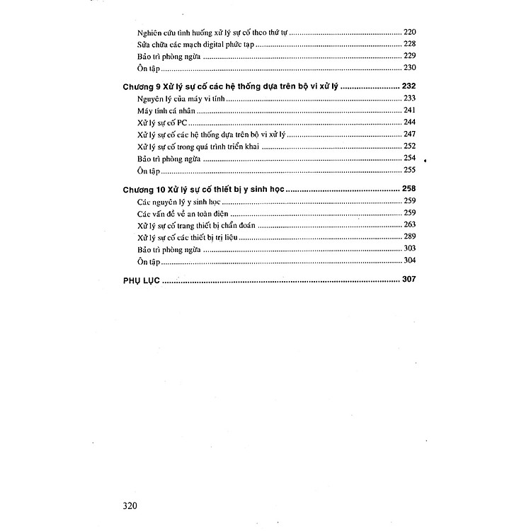 Chương 10 khái quát các thiết bị y sinh học. Các nguyên lý, ứng dụng, các qui trình chẩn đoán để sửa chữa và chuẩn hoá thiết bị chẩn đoán và trị liệu y khoa, chẳng hạn máy điện tâm đồ, các máy x-quang, các máy quét CT và MRI, máy siêu âm… Cuối sách là phụ lục, trình bày tóm tắt các bước chẩn đoán và xử lý sự cố các trang thiết bị về điện và điện tử đã được đề cập trong nội dung cuốn sách. Đây là tài liệu bổ ích cho những người quan tâm đến lĩnh vực điện và điện tử.