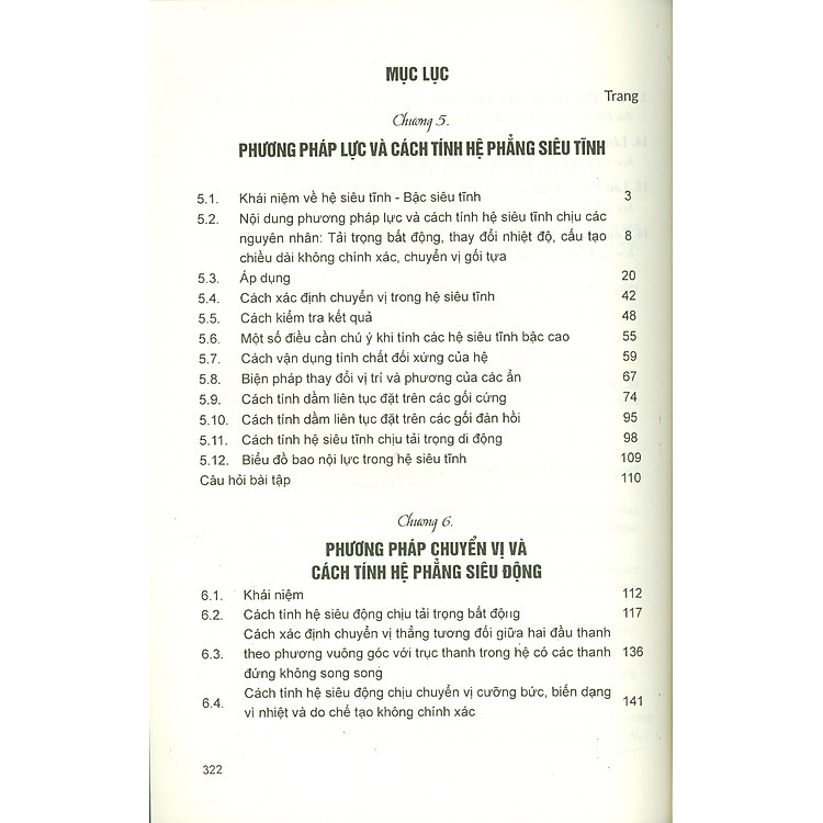 Nội dung phương pháp lực và cách tính hệ siêu tĩnh chịu các nguyên nhân: tải trọng bất động, thay đổi nhiệt độ, cấu tạo chiều dài không chính xác, chuyển vị gối tựaÁp dụng.Cách xác định vị trong hệ siêu tĩnh.Cách kiểm tra kết quả.Một số điều cần chú ý khi tính ác hệ siêu tĩnh bậc cao.Cách vận dụng tính chất đối xứng của hệ.Biện pháp thay đổi vị trí và phương của các ẩn.Cách tính dầm liên tục đặt trên các gối cứng.Các tính dầm liên tục đặt trên các gối đàn hồiCách tính hệ siêu tĩnh chịu tải trọng di độngBiểu đồ bao nội lực trong hệ siêu tĩnh.
