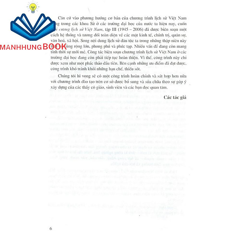 Mặc dù tác giả của bộ sách này đều là các nhà nghiên cứu lịch sử, những giảng viên đại học lâu năm, có uy tín và có nhiều cố gắng trong quá trình biên soạn, nhưng do tính chất phức tạp của một bộ thông sử, do yêu cầu phải phục vụ nhiều đối tượng bạn đọc khác nhau, bộ sách chưa thể trình bày được cặn kẽ, thể và đầy đủ các sự kiện, các mặt hoạt động khác nhau của xã hội và con người Việt Nam trong quá khứ cũng như hiện tại và chắc chắn không tránh khỏi những sơ suất, thiếu sót.Nhà xuất bản mong nhận được nhiều ý kiến đóng góp quý báu của bạn đọc cho bộ sách để các tác giả hoàn chỉnh thêm trong những lần tái bản. Chúng tôi hi vọng rằng, bộ sách này sẽ đáp ứng được một phần nào việc học tập, nghiên cứu, tìm hiểu lịch sử Việt Nam của đông đảo bạn đọc trong và ngoài nước.Nhân đây, Nhà xuất bản Giáo dục Việt Nam xin chân thành cảm ơn PGS, TS, Sử học Cao Văn Lượng, Trịnh Nhu, Nguyễn Quang Ngọc, Nguyễn Danh Phiệt, Văn Tạo, Chương Thâu đã đọc và đóng góp nhiều ý kiến quý báu.