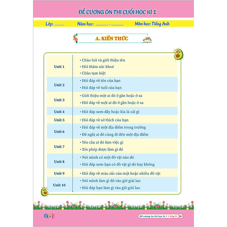 Đề Cương Ôn Thi Lớp 3 – Học Kì 1