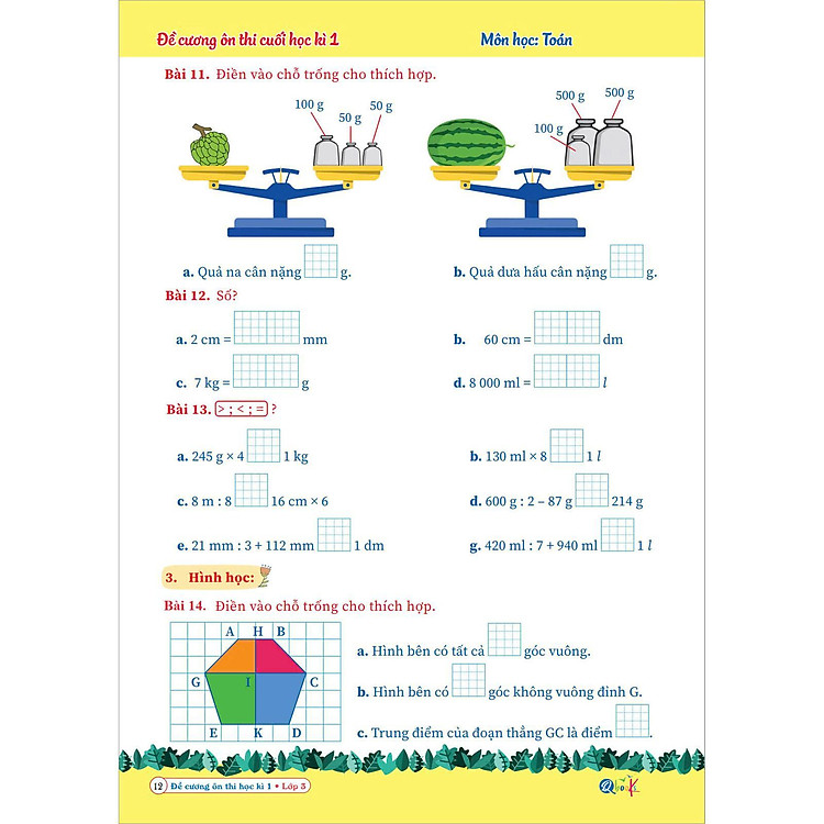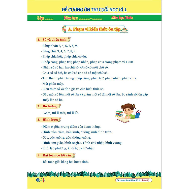 Giới thiệu Đề Cương Ôn Thi Lớp 3 – Học Kì 1