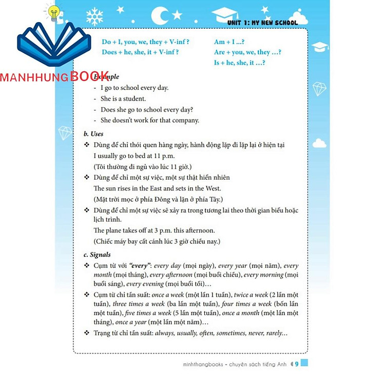 Với mỗi bài học, chúng tôi đều biên soạn theo ba phần kiến thức cơ bản: Lý thuyết, thực hành ngôn ngữ và thực hành kỹ năng.
