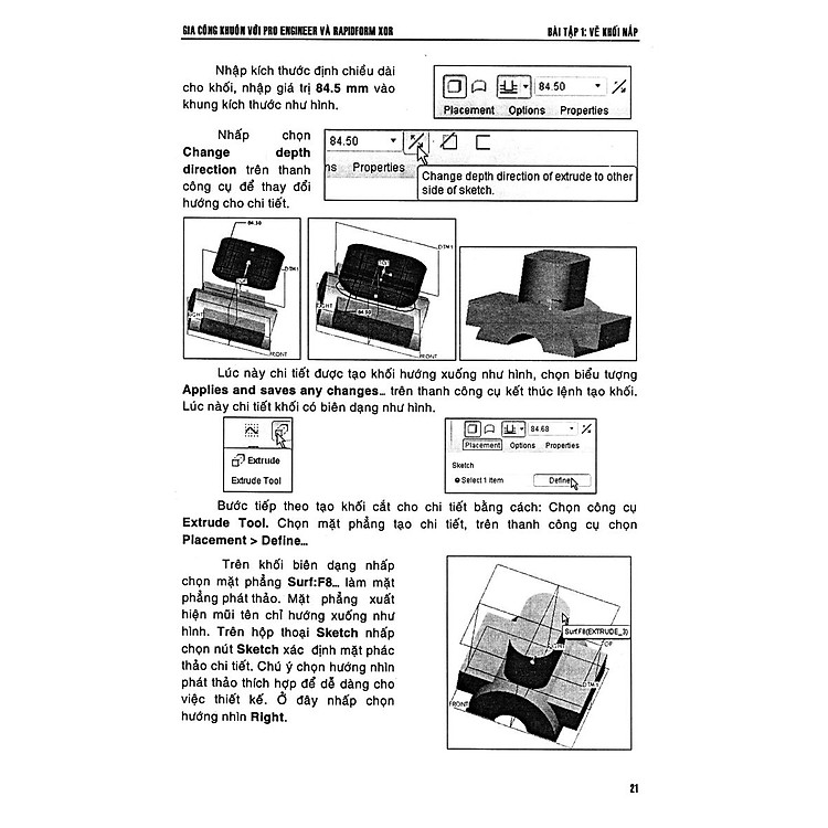 Quyển sách Gia Công Khuôn Với Pro Engineer & Rapidform Xor sẽ hướng dẫn cụ thể và thực tế nhất để ứng dụng Pro Engineer và Rapidform XOR trong vẽ 3D, phân khuôn, gia công khuôn và thiết kế ngược.