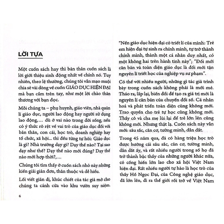 Một cuốn sách không đơn thuần chỉ là bổ sung tri thức, mà trên hết còn mang lại nguồn cảm hứng bền bỉ cho bạn đọc. Với những ai quan tâm đến, Giáo Dục Hiện Đại – Hồ Ngọc Đại (VCN) xứng đáng có mặt trong tủ sách.