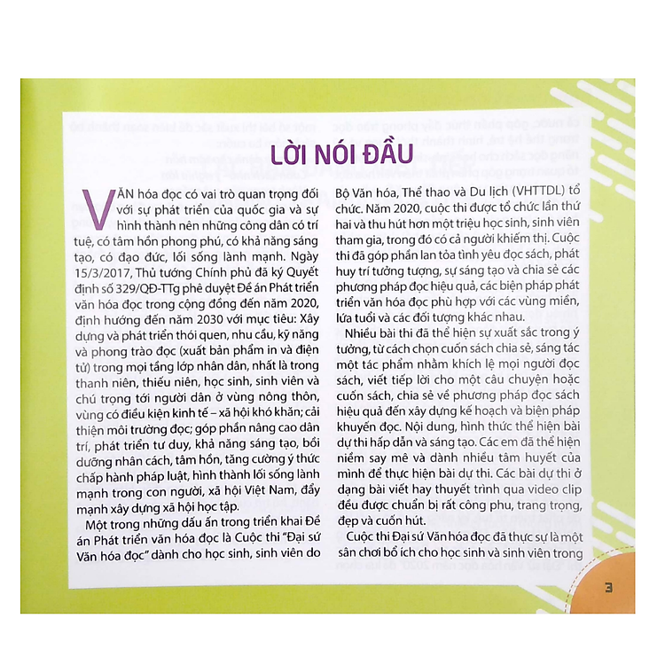 Văn hóa đọc có vai trò quan trọng đối với sự phát triển của quốc gia và sự hình thành nên những công dân có trí tuệ, có tâm hồn phong phú, có khả năng sáng tạo, có đạo đức, lối sống lành mạnh. Chính vì vậy, Thủ tướng Chính phủ đã ký quyết định phê duyệt Đề án Phát triển văn hóa đọc trong cộng đồng. Một trong những dấu ấn trong triển khai Đề án là Cuộc thi Đại sứ văn hóa đọc dành cho học sinh và sinh viên.