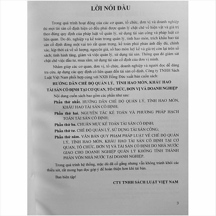 Nhằm giúp các cơ quan, đơn vị, tổ chức, doanh nghiệp và người đọc dễ dàng tra cứu, áp dụng các quy định có liên quan đến tài sản cố định, Nhà sách Nam Việt xin trân trọng giới thiệu cuốn sách: Hướng Dẫn Chế Độ Quản Lý, Tính Hao Mòn, Khấu Hao Tài Sản Cố Định tại Cơ Quan, Tổ Chức, Đơn Vị và Doanh Nghiệp
