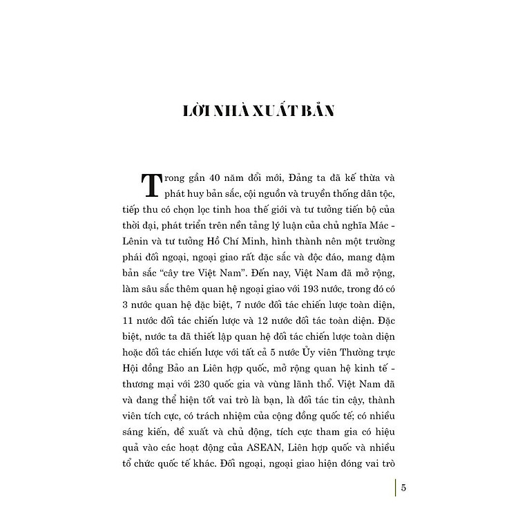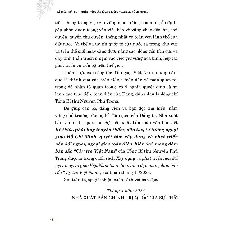 - Compiled speeches, articles, and interviews by General Secretary Nguyễn Phú Trọng on Vietnam’s foreign policy.