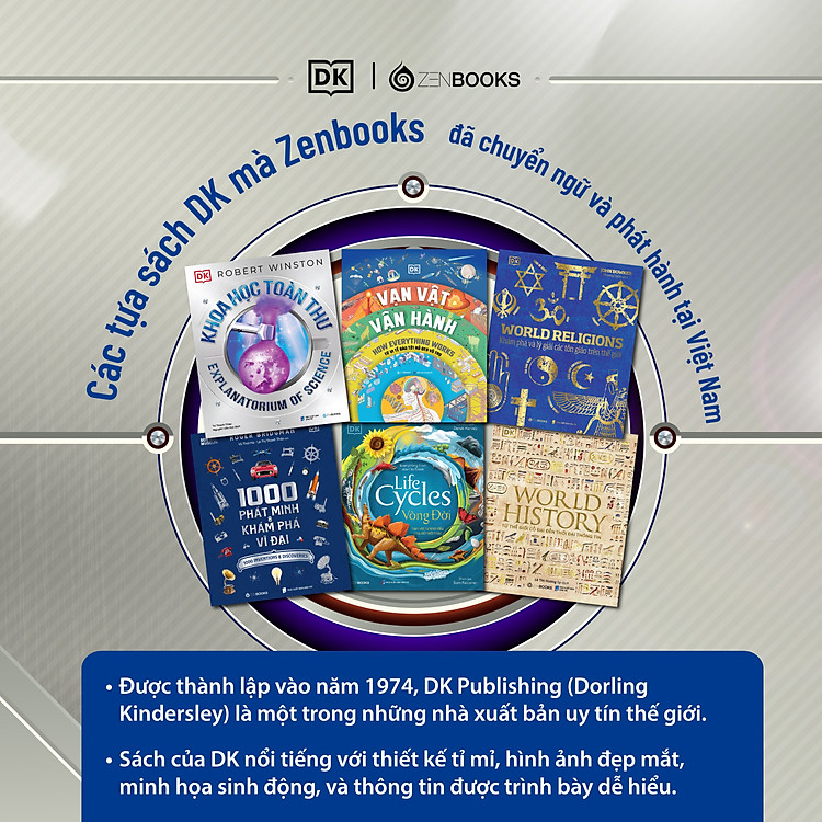 “Khoa Học Toàn Thư” nằm trong series các cuốn sách tranh khoa học – lịch sử – văn hoá được Zenbooks chuyển ngữ từ ấn bản của nhà xuất bản DK (Dorling Kindersley Limited), Anh Quốc.