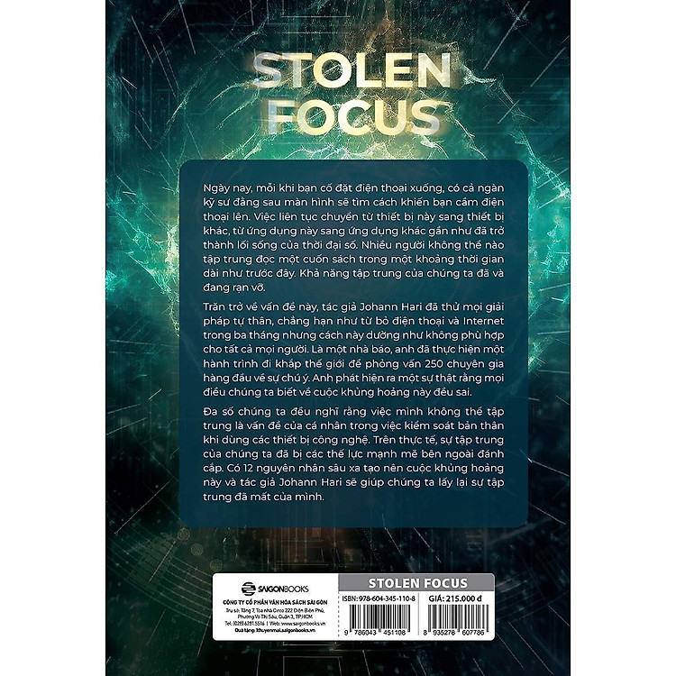 - Title: “Mua Sách – Kiểm Soát Sự Tập Trung Giữa Cơn Bão Công Nghệ” by Johann Hari, published by Saigon Books.