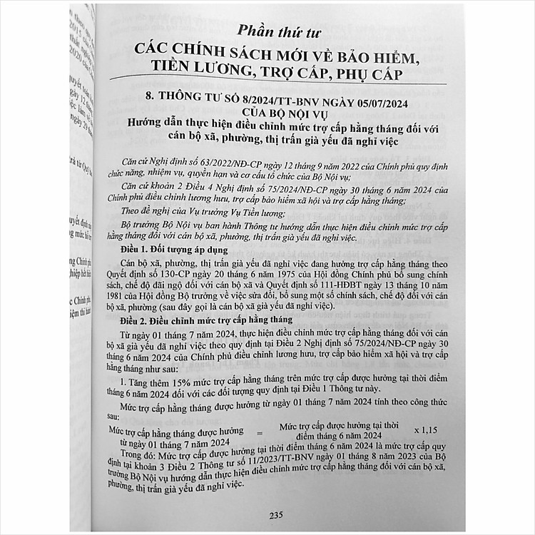 Phần thứ tư. Các chính sách mới về bảo hiểm, tiền lương, trợ cấp, phụ cấp