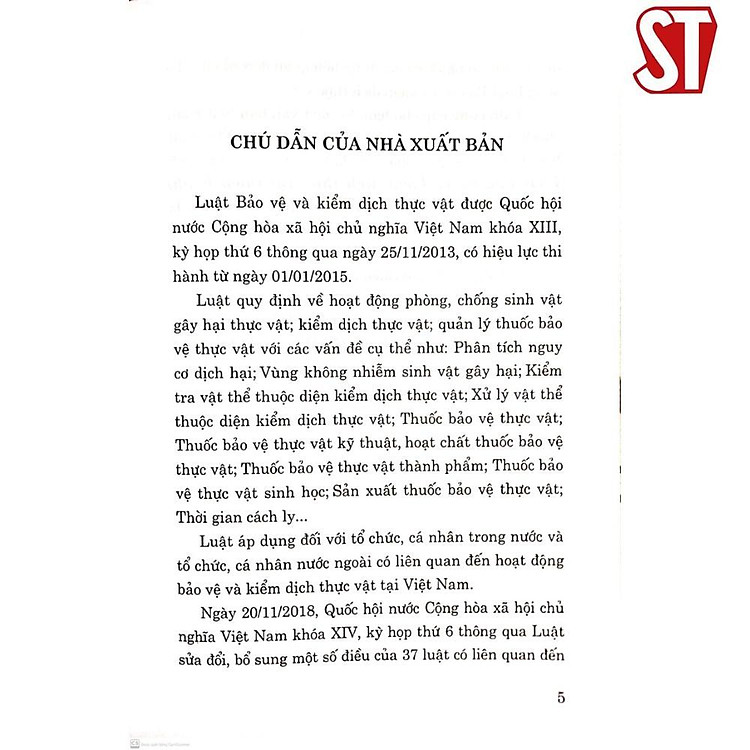 Luật Bảo Vệ Và Kiểm Dịch Thực Vật (Hiện Hành) (Sửa Đổi, Bổ Sung Năm 2018)