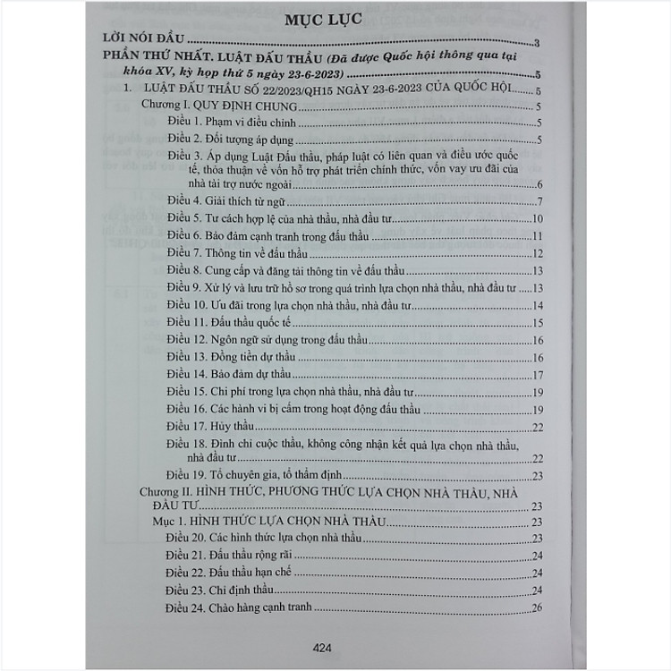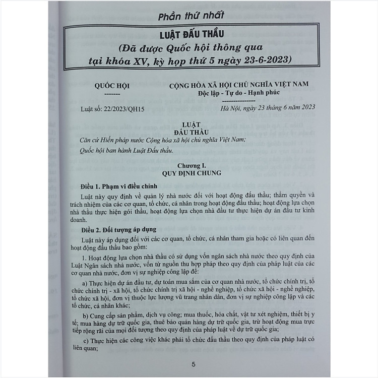 Phần thứ nhất. Luật Đấu thầu 2023 đã được thông qua tại kỳ họp thứ 5 Quốc hội khóa XV ngày 23-6-2023 (có hiệu lực từ ngày 01/01/2024)
