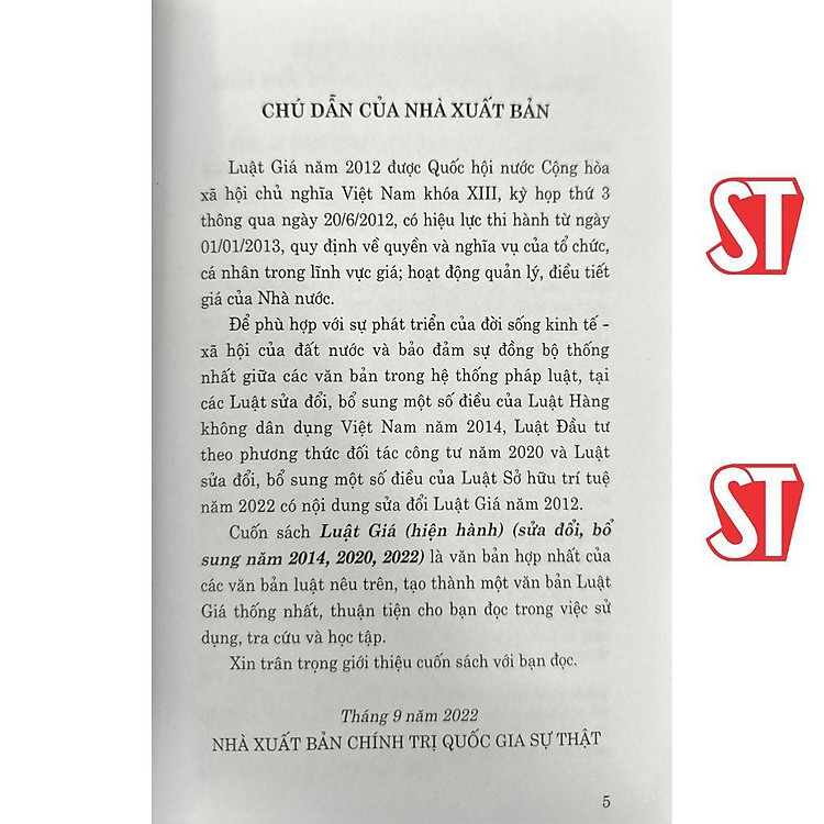 - Product Title: Mua Sách – Luật Giá (Hiện Hành) (Sửa Đổi, Bổ Sung Năm 2014, 2020, 2022)
