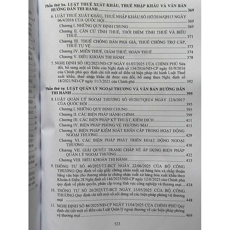 Phần thứ ba. Luật Thuế xuất khẩu, thuế nhập khẩu và văn bản hướng dẫn thi hành