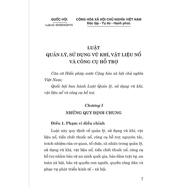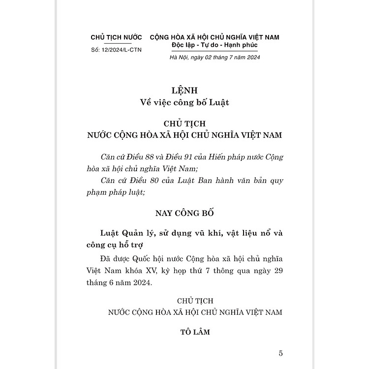 Luật Quản Lý, Sử Dụng Vũ Khí Vật Liệu Nổ và Công Cụ Hỗ Trợ Năm 2024 – Bản In 2024