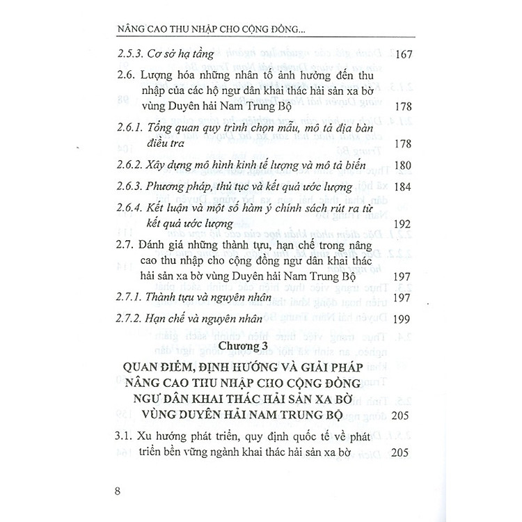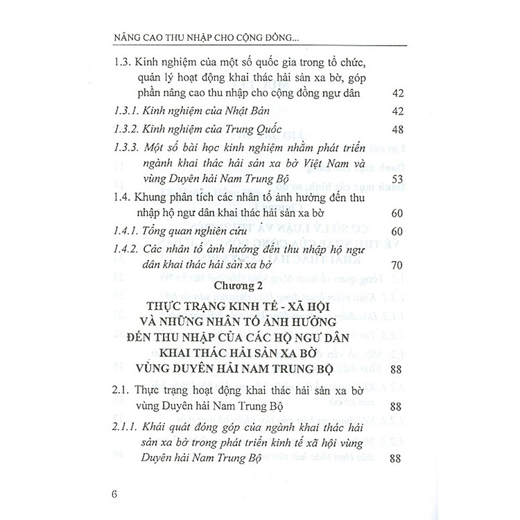Ngành khai thác hải sản xa bờ vùng Duyên hải Nam Trung Bộ là ngành kinh tế quan trọng trong thực hiện Chiến lược phát triển bền vững kinh tế biển Việt Nam và cũng là sinh kế chính yếu của cộng đồng ngư dân ven biển Vùng khi mà hoạt động đánh bắt thủy sản ven bờ gặp nhiều khó khăn trong gia tăng sản lượng. Xuất phát từ yêu cầu thực tiễn đó, nhóm tác giả là các nhà nghiên cứu của Viện Khoa học xã hội vùng Trung Bộ trực thuộc Viện Hàn lâm KHXH Việt Nam đã thực hiện đề tài và xuất bản cuốn sách chuyên khảo Nâng cao thu nhập cho cộng đồng ngư dân khai thác hải sản xa bờ vùng Duyên hải Nam Trung Bộ tại Nhà xuất bản Khoa học xã hội.
