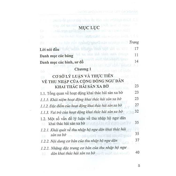 Bằng những phân tích thống kê mô tả, cuốn sách đã làm rõ nét thực trạng “bức tranh” hoạt động khai thác hải sản xa bờ; thực trạng triển khai các cơ chế, chính sách phát triển hoạt động khai thác hải sản xa bờ; thực trạng thực hiện chính sách giảm nghèo, an sinh xã hội; thực trạng thực hiện các dịch vụ công cho cộng đồng ngư dân vùng ven biển Nam Trung Bộ. Đặc biệt, trên cơ sở dữ liệu điều tra sơ cấp 300 hộ ngư dân khai thác hải sản xa bờ tại 3 địa phương vùng Nam Trung Bộ, thực trạng đời sống kinh tế xã hội, thu nhập, sinh kế, đặc điểm nhân khẩu học của cộng đồng ngư dân khai thác hải sản xa bờ vùng Nam Trung Bộ đã được phân tích và luận giải khá toàn diện, rõ nét.